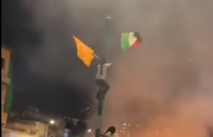 פלסטין דגל / N12 - מפגינים הניפו את דגל פלסטין בצפון ים המלח, חיילי צה"ל... - לאחר זמן מה מכניסת השוטרים לשכונה שלוותה בקריאות קשות, נכנסו כוחות גדולים של יסמ.